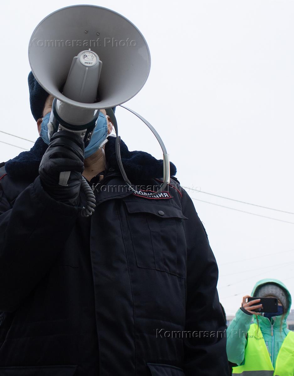 Unauthorized rally in support of opposition leader Alexei Navalny in Kazan. Police officer urges people to go home.