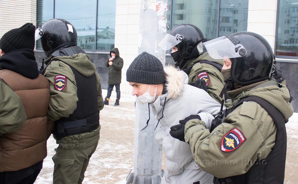 Unauthorized rally of supporters of opposition leader Alexei Navalny in Kazan. OMON officers arresting the protesters.