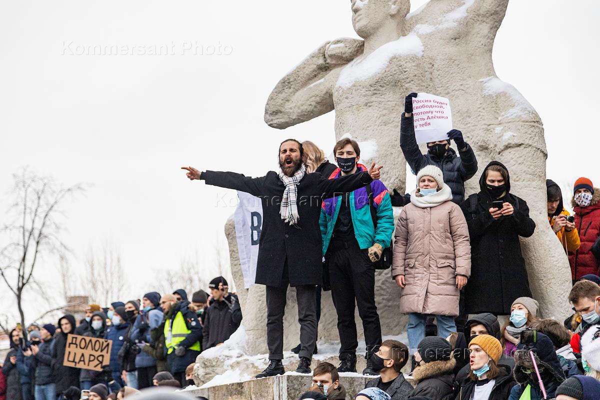 Несогласованная акция сторонников оппозиционера Алексея Навального в Санкт-Петербурге. Участники во время акции.