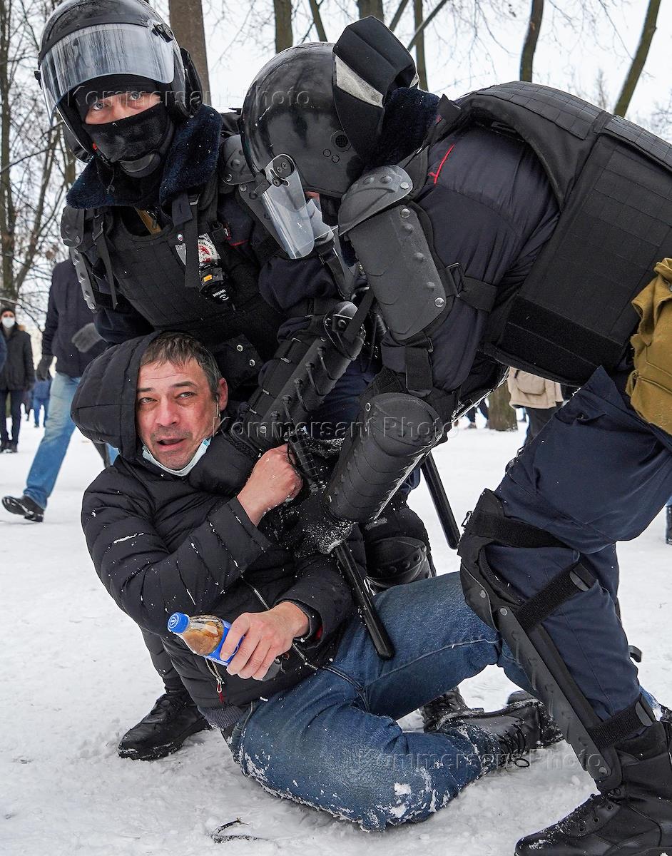 Unauthorized rally in support of opposition leader Alexei Navalny in St. Petersburg. Participants during the rally.