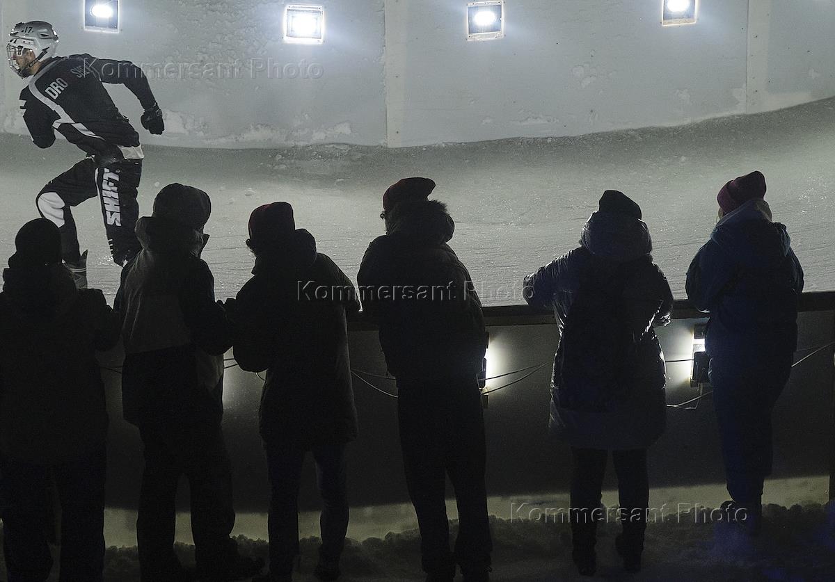 Stage of the World Championship in downhill skating Ice Cross on the track of the all-season resort "Igora". First race of the 2020/2021 Red Bull Ice Cross season. Spectators before the start of the competition.