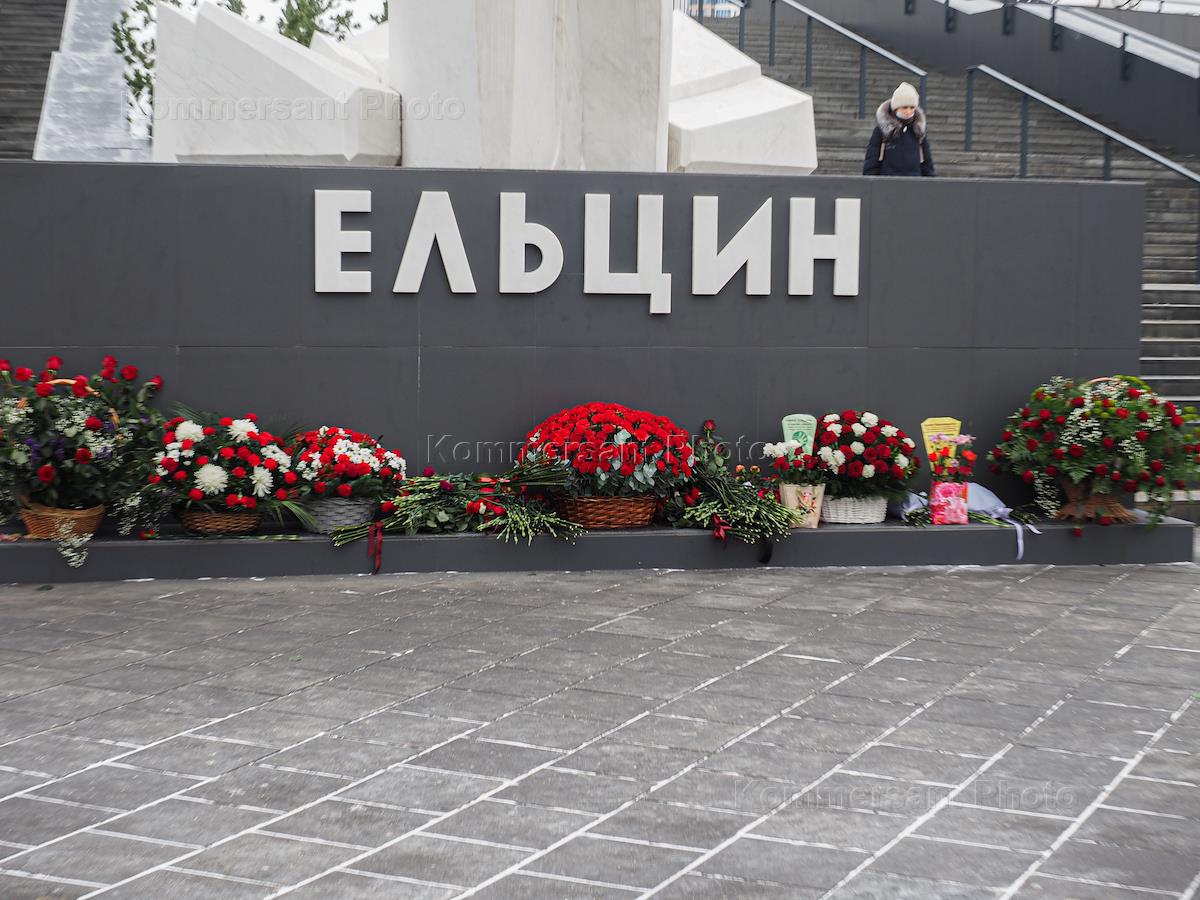 Венки у памятника первому президенту России Борису Ельцину, возложенные в честь его 90-летия, у здания "Ельцин Центра".