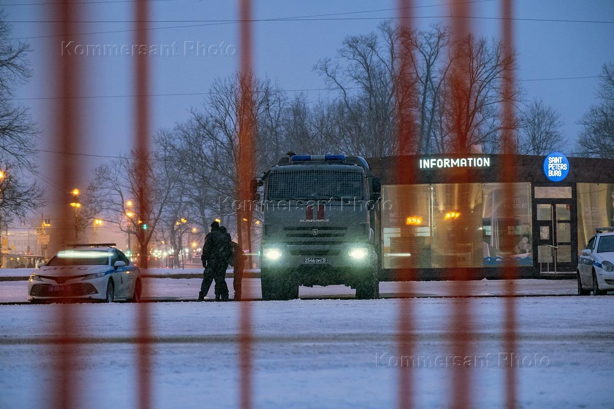 Genre photography. DPS and Rosgvardia cars on the Palace Square.