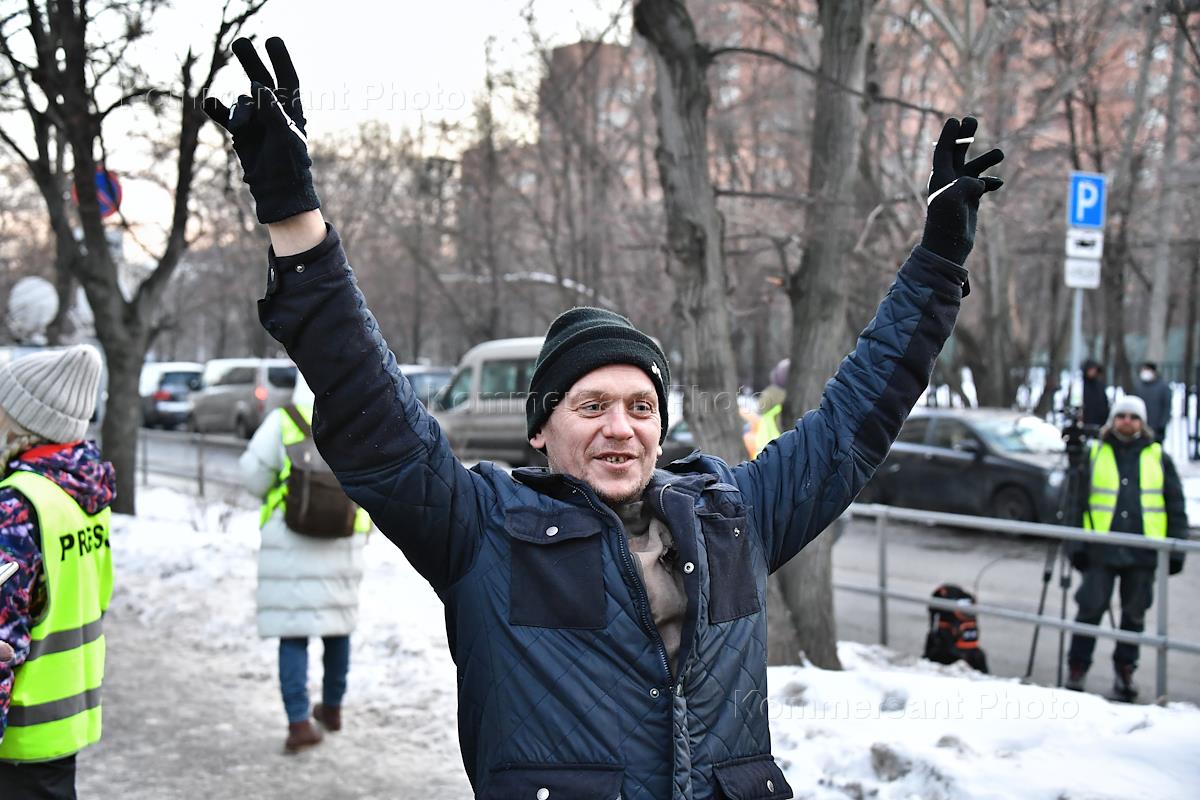 Рассмотрение вопроса замены наказания оппозиционеру Алексею Навальному в виде 3,5 года лишения свободы условно на реальный срок заключения в рамках уголовного дела "Ив Роше" в Московского городского суда. Ситуация у здания суда.