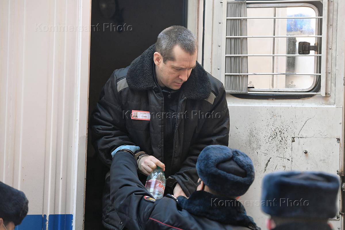 The Presnensky court will hold preliminary hearings in a criminal case against the previously convicted former head of the "T" department of the Main Directorate for Economic Security and Combating Corruption of the Ministry of Internal Affairs of the Russian Federation Dmitry Zakharchenko accused of bribes worth 1.4 billion rubles. Delivery of the defendants to the courthouse.