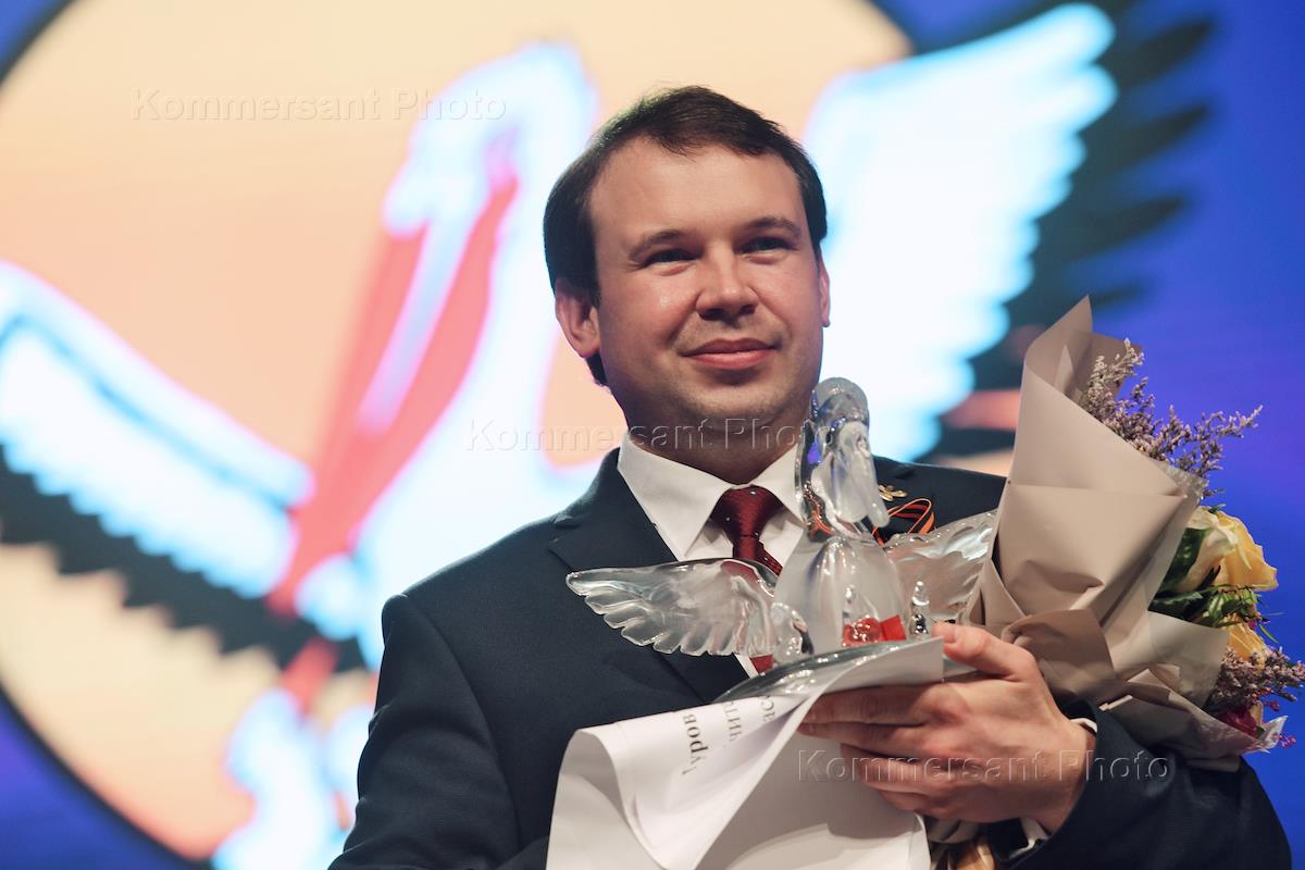 Closing ceremony of the final stage of the Russian competition "Teacher of the Year - 2020". Winner of the competition Mikhail Gurov, teacher of mathematics at the Lyceum of Classical Elite Education in Rostov-on-Don, during a ceremony.