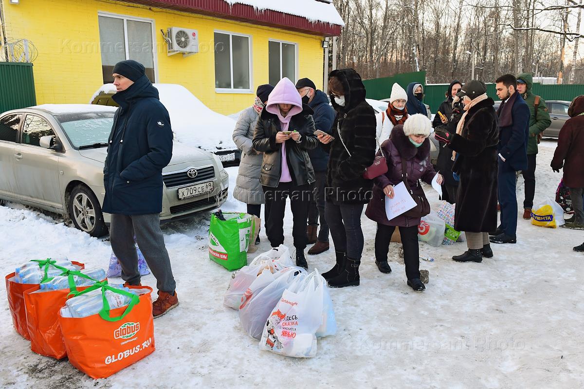 GBU Multifunctional Migration Center (special detention center for migrants) in the village of Sakharovo in the Troitsky Administrative District, where the detained participants of the uncoordinated action on January 31, 2021 in support of politician Alexei Navalny in the center of Moscow were taken. Relatives of the detainees at the special detention center.