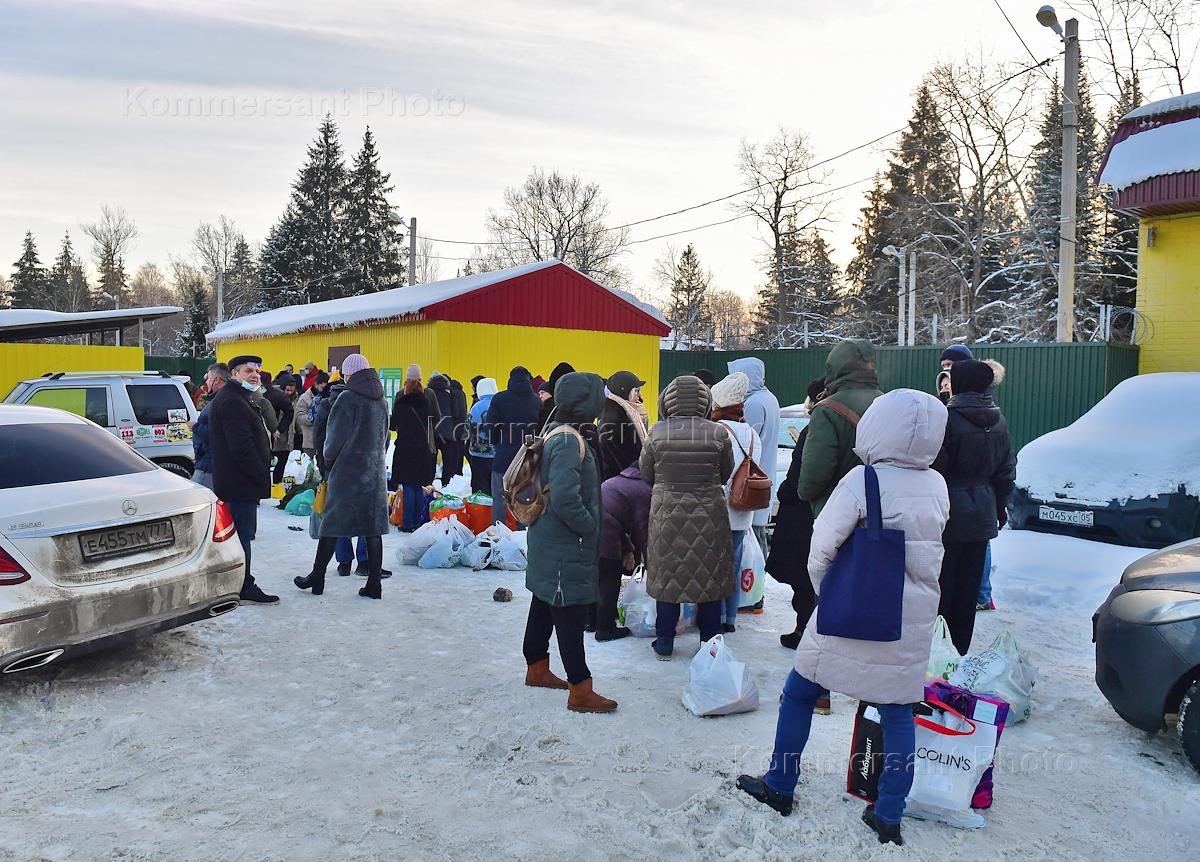 GBU Multifunctional Migration Center (special detention center for migrants) in the village of Sakharovo in the Troitsky Administrative District, where the detained participants of the uncoordinated action on January 31, 2021 in support of politician Alexei Navalny in the center of Moscow were taken. Relatives of the detainees at the special detention center.