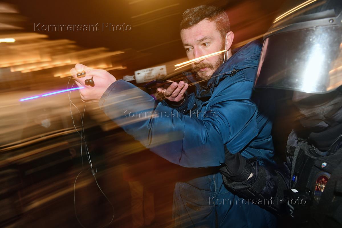 A rally in support of the politician Alexei Navalny, announced by Navalny's headquarters in connection with the verdict of the Moscow City Court to substitute Alexey Navalny's suspended sentence with a real one. Police officers arresting participants of the rally.