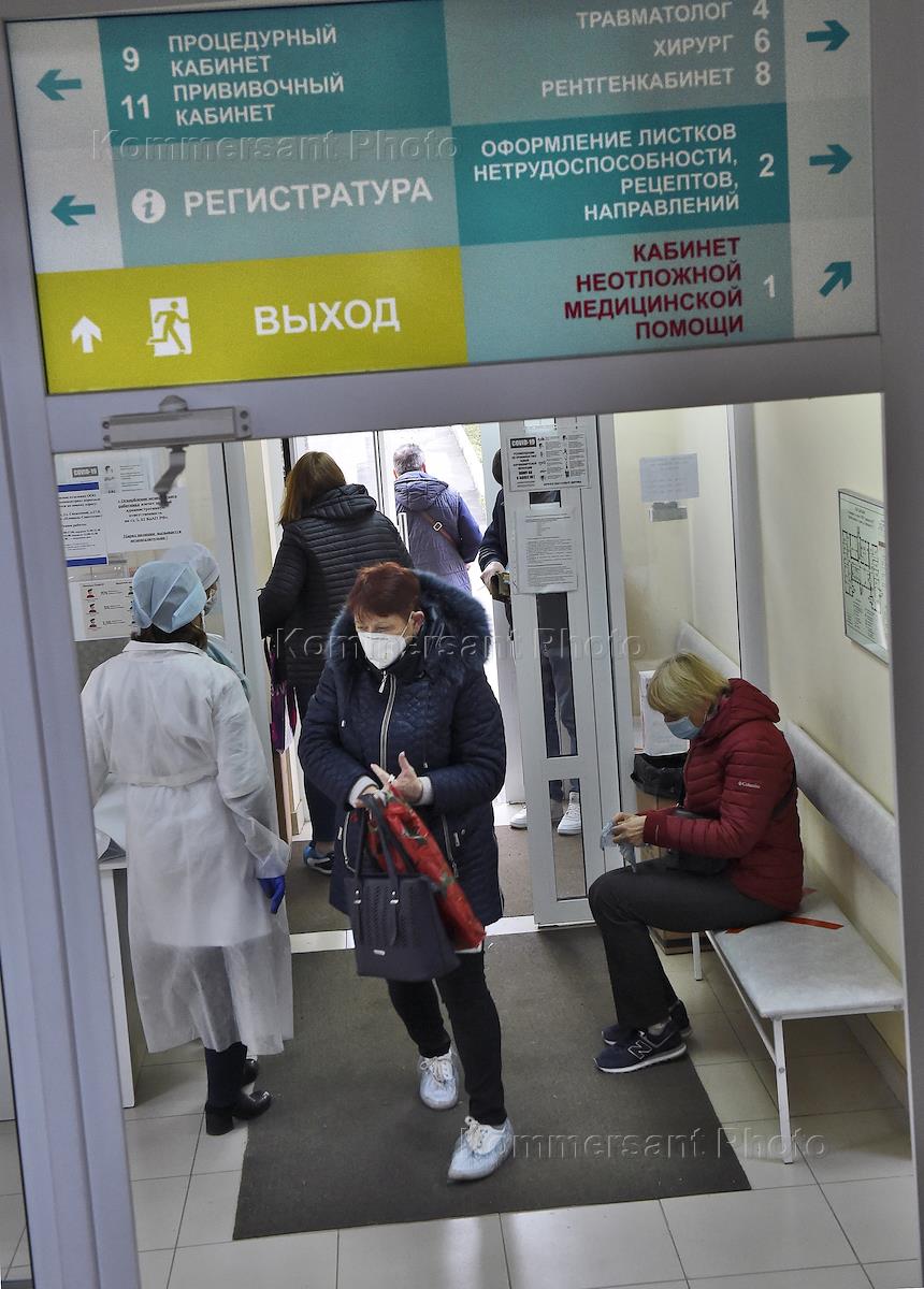 Вакцинация населения от коронавирусной инфекции COVID-19 препаратом "Гам-КОВИД-Вак" ("Спутник V"). Пациенты в поликлинике.
