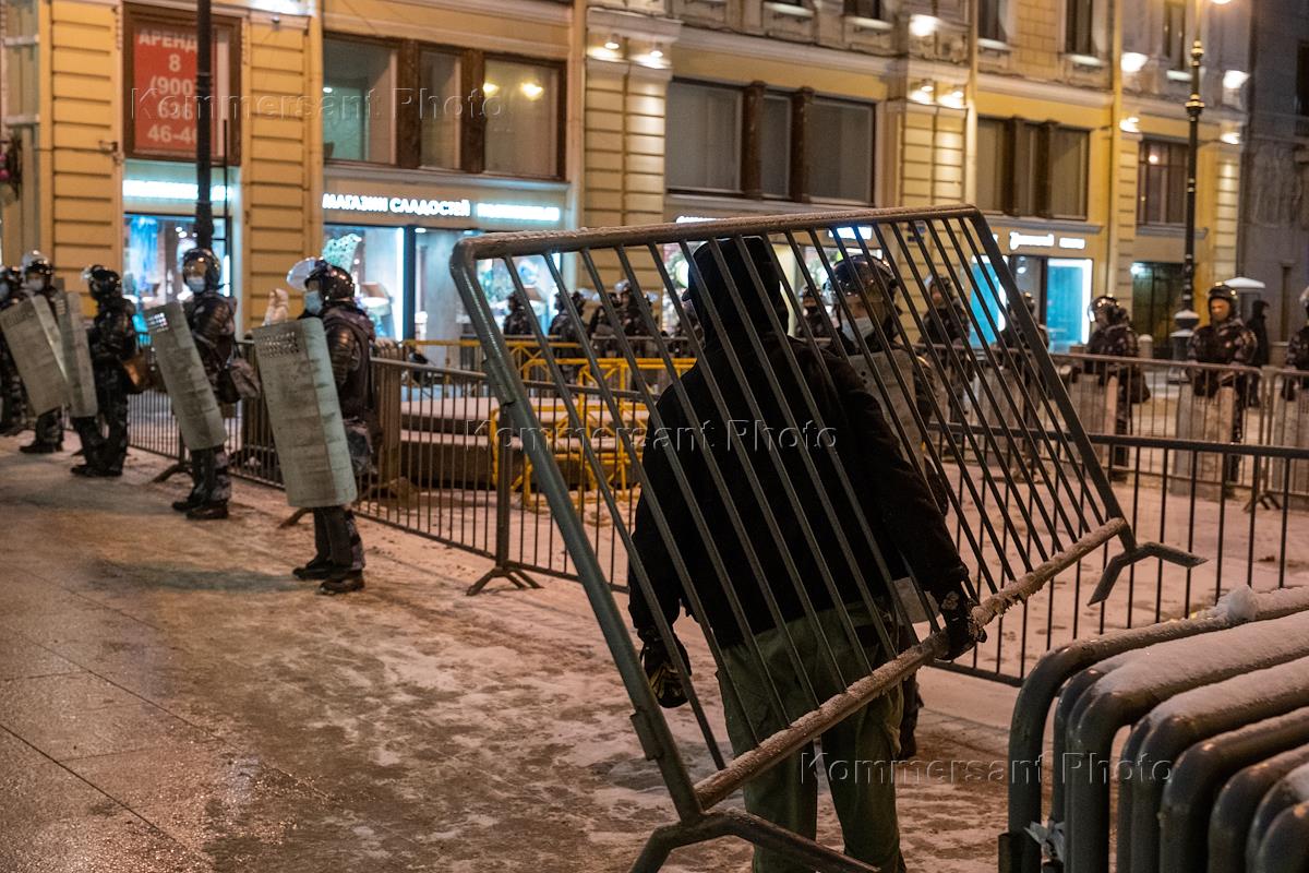 The situation in the center of St. Petersburg due to the rally in support of the politician Alexei Navalny, announced by Navalny's headquarters after the verdict of the Moscow City Court to substitute a suspended sentence of Alexei Navalny with a real term of imprisonment in the Yves Rocher criminal case. Law enforcement officers on the streets of the city.