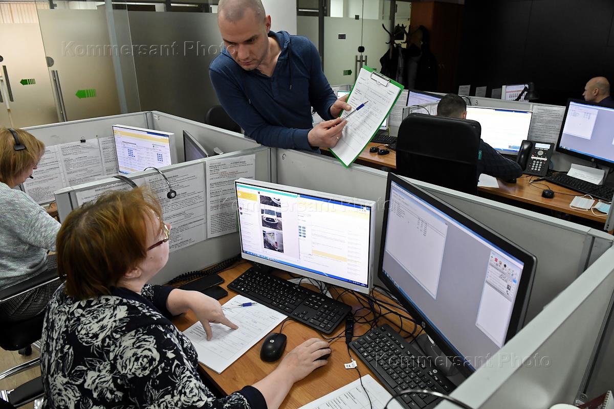 Колл-центр системы быстрого реагирования на пробки и дорожно-транспортные происшествия (ДТП). Сотрудники Центра безопасности дорожного движения Московской области (ЦБДДМО) во время работы.