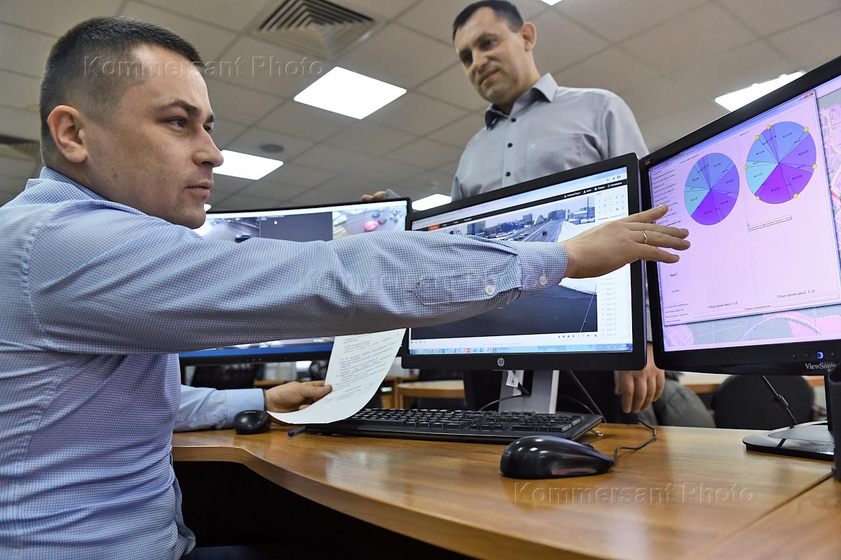 Колл-центр системы быстрого реагирования на пробки и дорожно-транспортные происшествия (ДТП). Сотрудники Центра безопасности дорожного движения Московской области (ЦБДДМО) во время работы.