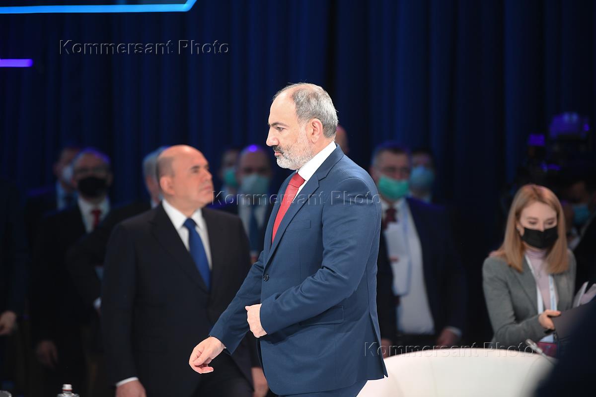 Рабочая поездка председателя правительства России Михаила Мишустина в Казахстан. Премьер-министр Армении Никол Пашинян после пленарной сессии форума Digital Almaty 2021.