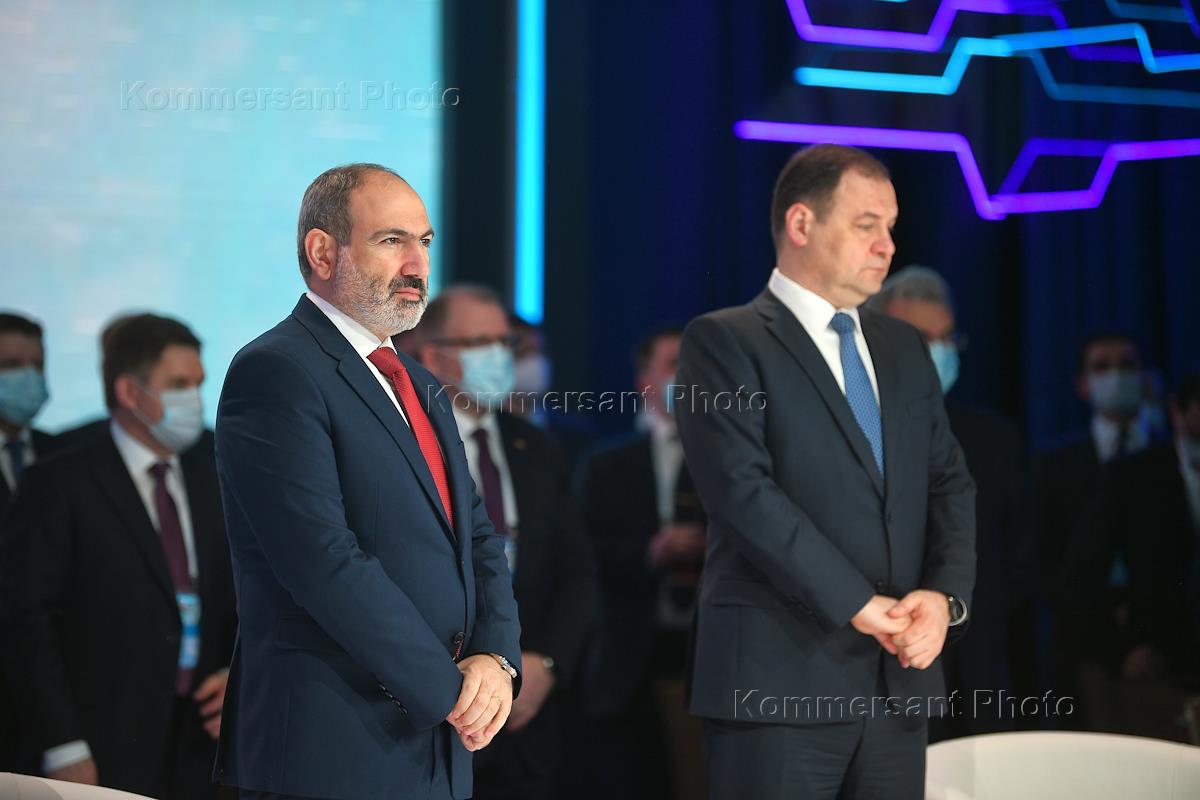 Рабочая поездка председателя правительства России Михаила Мишустина в Казахстан. Премьер-министр Армении Никол Пашинян во время пленарной сессии форума Digital Almaty 2021.