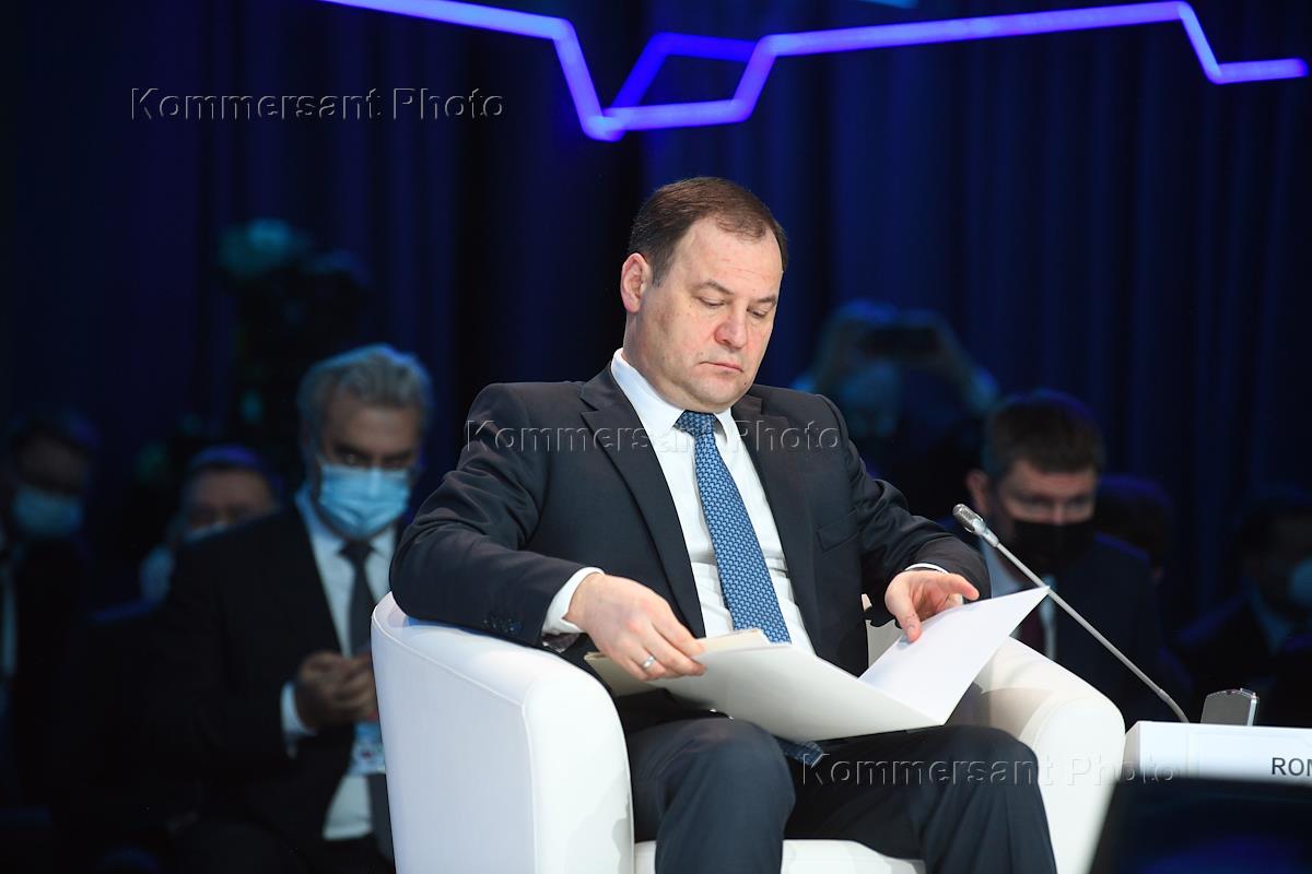 Working visit of Russian Prime Minister Mikhail Mishustin to Kazakhstan. Prime Minister of Belarus Roman Golovchenko during the plenary session of the Digital Almaty 2021 forum.