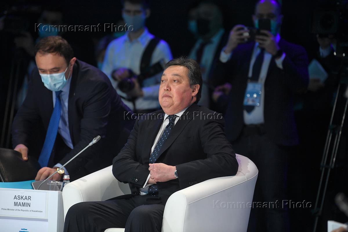 Working visit of Russian Prime Minister Mikhail Mishustin to Kazakhstan. Prime Minister of Kazakhstan Askar Mamin during the plenary session of the Digital Almaty 2021 forum.