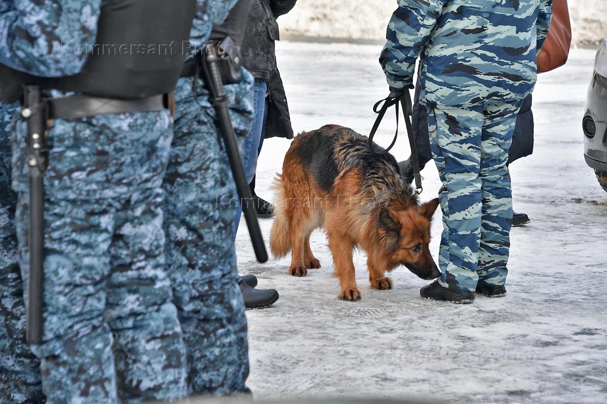Court hearing of opposition leader Alexei Navalny's case accused of slandering the veteran of the 2nd World War Ignat Artyomenko, at the Babushkinsky District Court. The case against Navalny was brought up after he publicly commented the RT's video devoted to voting on amendments to the Constitution. Artyomenko was one of the characters in this video. Law enforcement cars on the street of Pilot Babushkin.