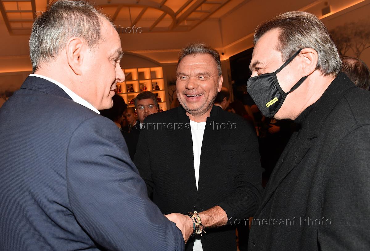 Premiere of Renata Litvinova's new film "North Wind" at the Khudozhestvenny cinema. Chairman of the Board of the Association of Film and Television Producers Sergei Selyanov (left) at the premiere.