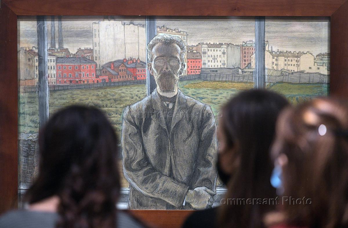 Выставка "Александр Бенуа и его "Мир искусства" из цикла сменных экспозиций "Художник и время" в Государственной Третьяковской галерее в Лаврушинском переулке. Посетители на выставке.