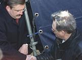 Генеральный директор канала "НТВ" Евгений Киселев (слева) и журналист Сергей Доренко (справа) на митинге в защиту свободы прессы, телеканала "НТВ" и холдинга "Медиа-Мост", прошедшем на Пушкинской площади.