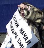 Журналист Андрей Черкизов на митинге в защиту свободы прессы, телеканала "НТВ" и холдинга "Медиа-Мост", прошедшем на Пушкинской площади.