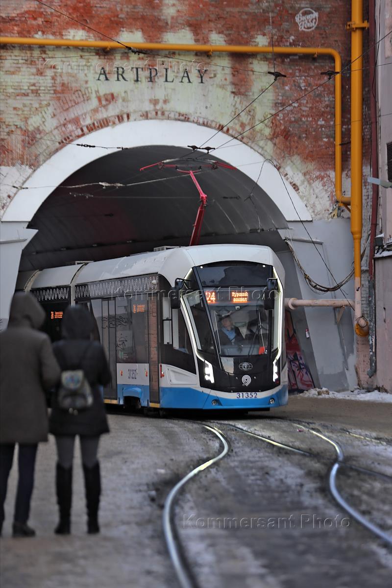 Виды Москвы. Жанровая фотография. Трамвай выезжает из тоннеля.