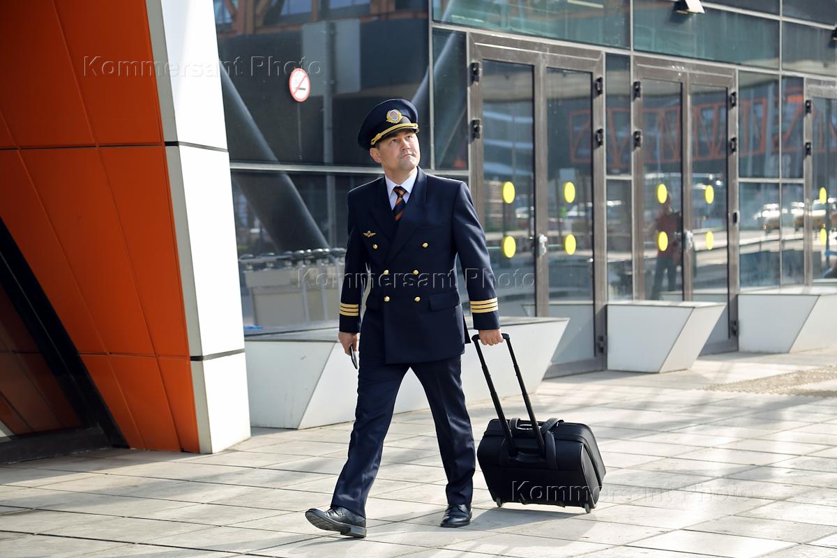 Виды Москвы. Жанровая фотография. Пилот гражданской авиации с чемоданом в Международном аэропорту Шереметьево имени А.С.Пушкина.