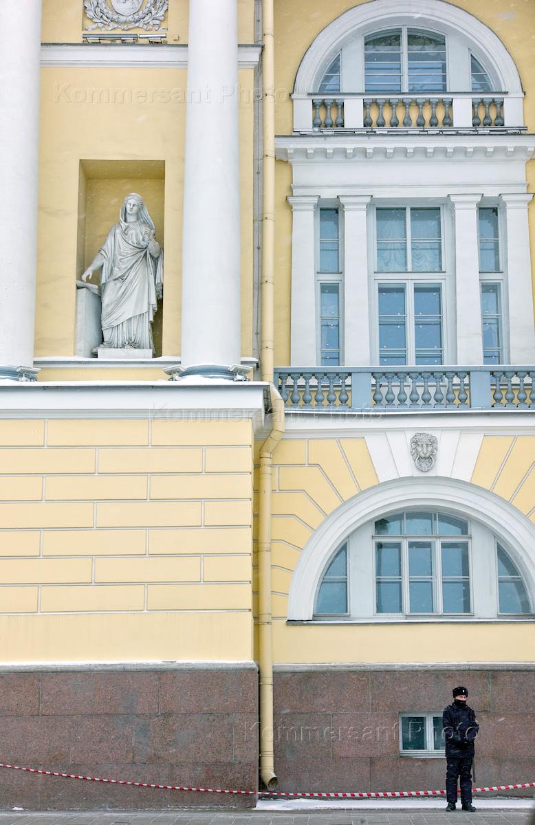 The situation in the center of St. Petersburg. Authorities blocked the central streets and squares of St. Petersburg. The metro station "Nevsky Prospekt" was closed, the movement of public transport along Nevsky Prospekt from Vosstaniya Square to Palace Square was suspended. Snow removal equipment on Millionnaya Street.