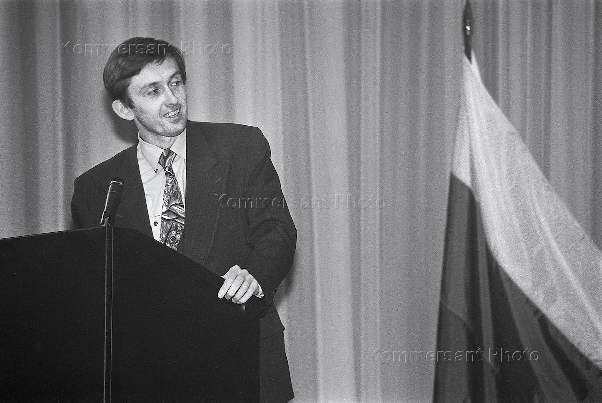 Президент Сбербанка России Олег Яшин (в центре) во время пресс-конференции.