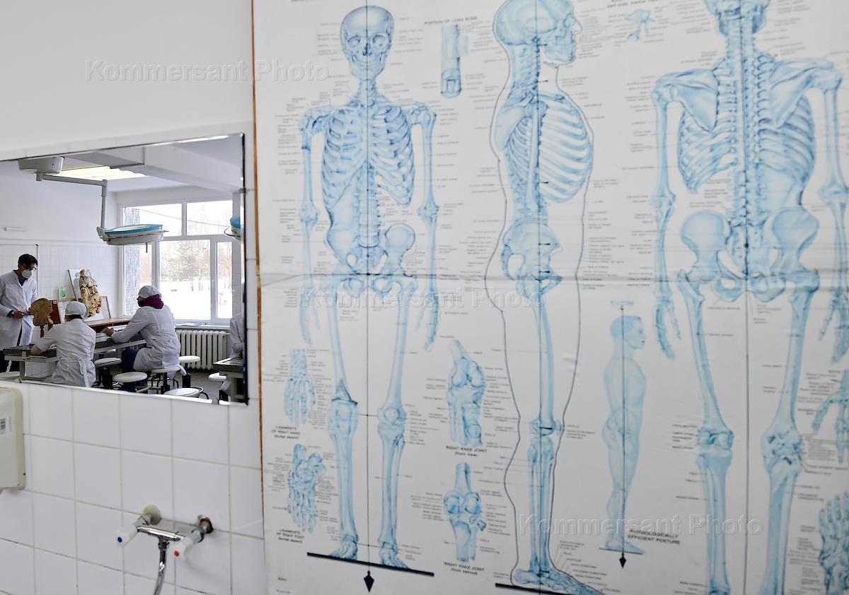 Возвращение студентов Российского университета дружбы народов (РУДН) к очному обучению. РУДН вернулся к очному формату обучения после ослабления ограничений, связанных с пандемией коронавирусной инфекции COVID-19. Жанровая фотография. Студенты Медицинского института РУДН во время занятий.