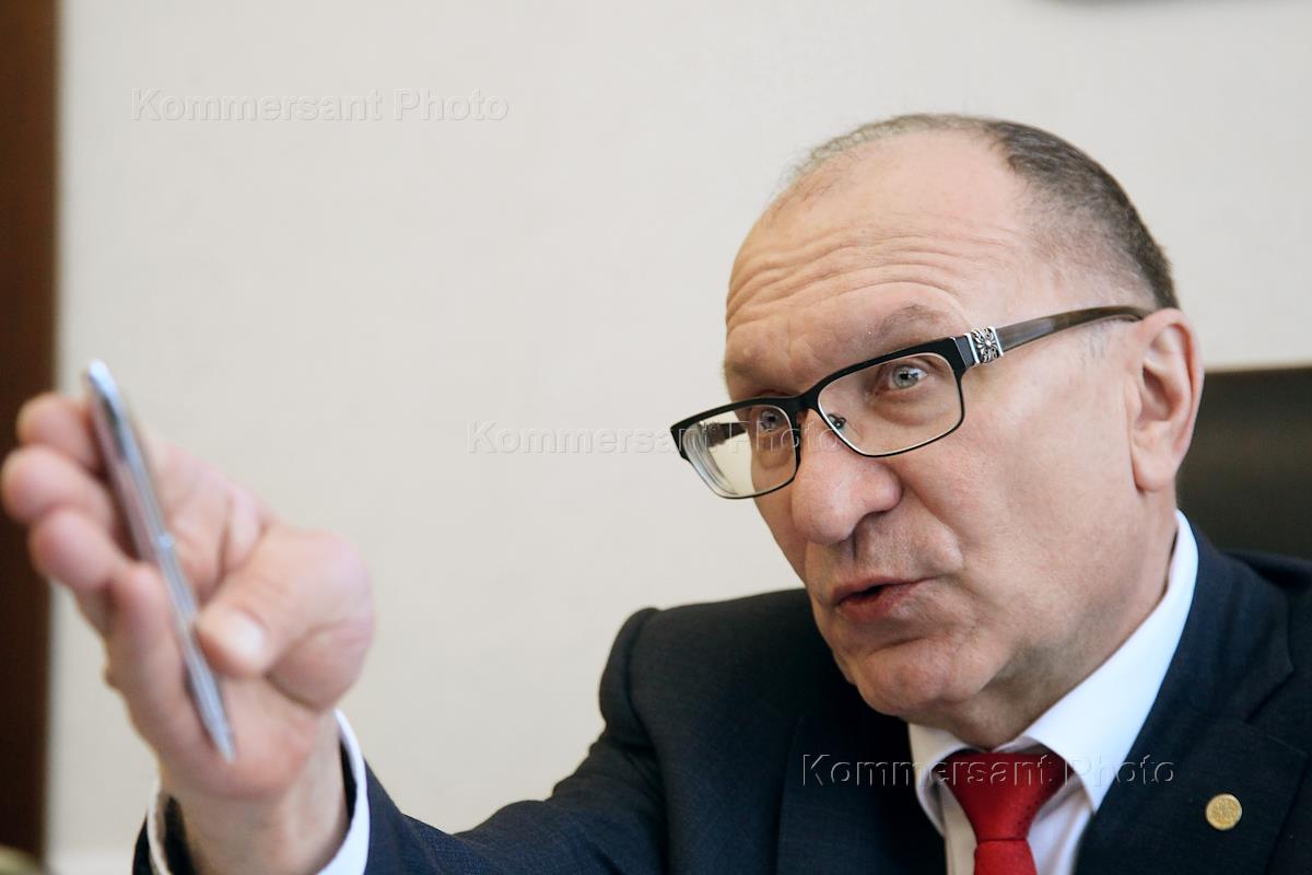 Interview with the rector of the Nizhny Novgorod Technical University (NSTU) Sergei Dmitriev in his office.