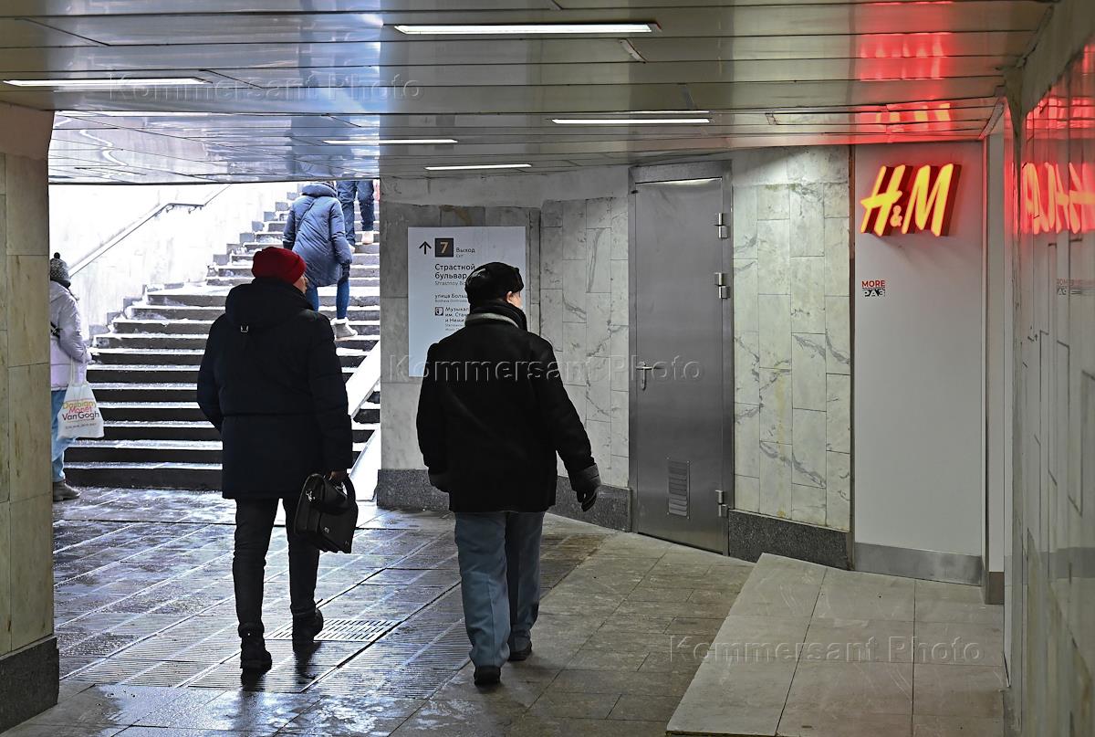 Views of Moscow. Genre photography. Shop H&M on Tverskaya street. Entrance to the shop.