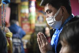 Верующая во время обряда Дугжууба накануне празднования Сагаалгана (Цагаан сар) (Буддийский Новый год) в Ринчин дацане.