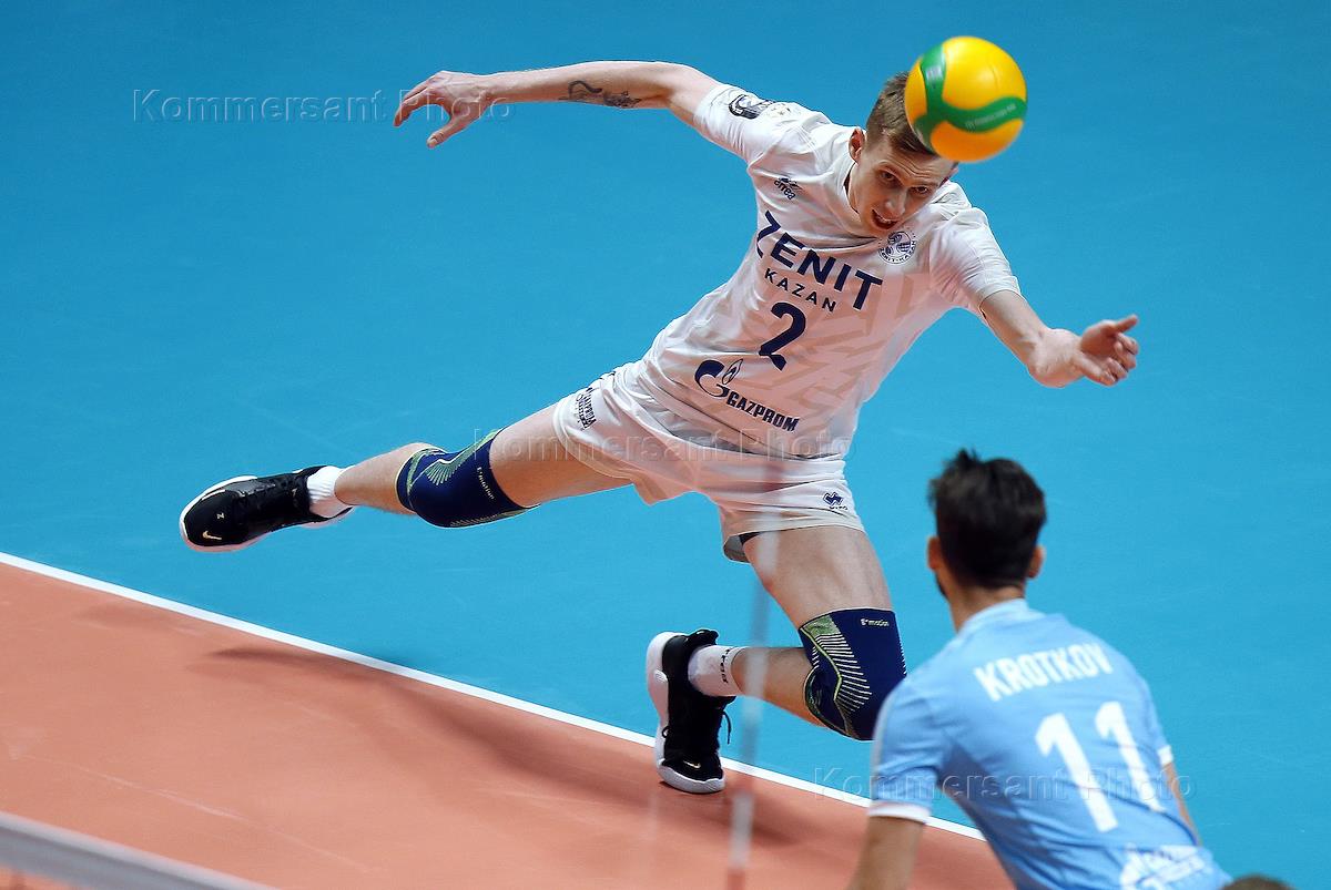 Европейская Лига чемпионов среди мужчин. Групповой этап. Матч между командами "Зенит-Казань" (Казань, Россия) и "Ах Воллей" (Любляна, Словения). Игрок команды "зенит-Казань" Андрей Сурмачевский во время матча.