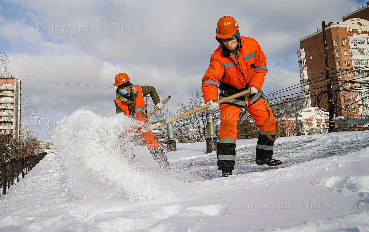 Виды Москвы во время снегопада. Жанровая фотография. Уборка снега в центре города.