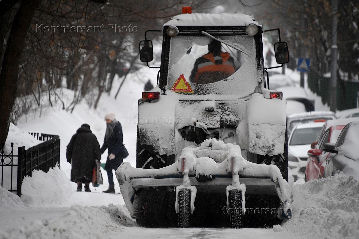 Последствия снегопада в городе. Жанровая фотография. Уборка снега на улице.