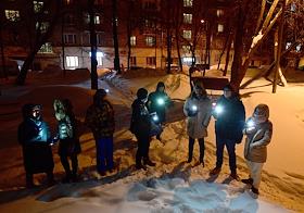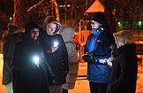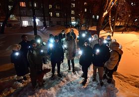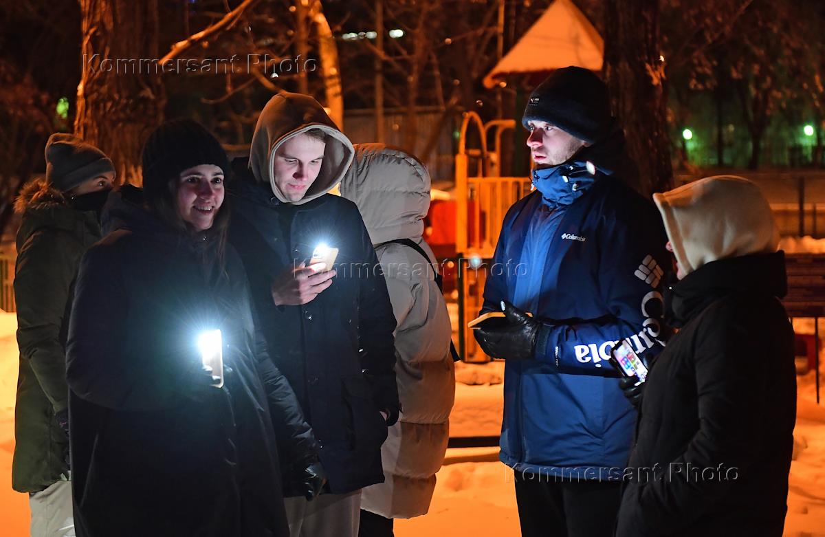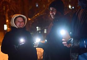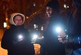 Love is stronger than fear! rally in support of the politician Alexei Navalny. Participants with flashlights on in their mobile phones during the rally.