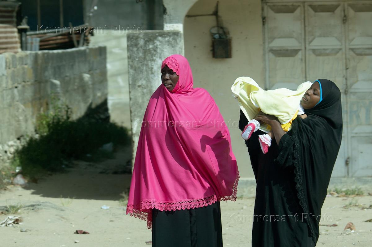 Виды Занзибара. Жанровая фотография. Женщины в чадрах на улице.