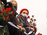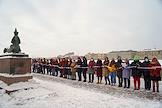 Акция "Цепь солидарности" в поддержку Юлии Навальной и всех женщин-политзаключенных у памятника жертвам политических репрессий на Воскресенской набережной. Участницы во время акции.