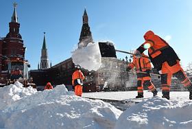 Жанровая фотография. Ликвидация последствий снегопада. Снегоуборочная техника во время уборки снега с Красной площади.