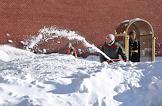 Жанровая фотография. Ликвидация последствий снегопада. Сотрудники коммунальных служб во время уборки снега с Манежной площади.