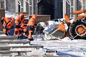 Жанровая фотография. Сотрудники коммунальных служб во время уборки снега.