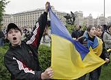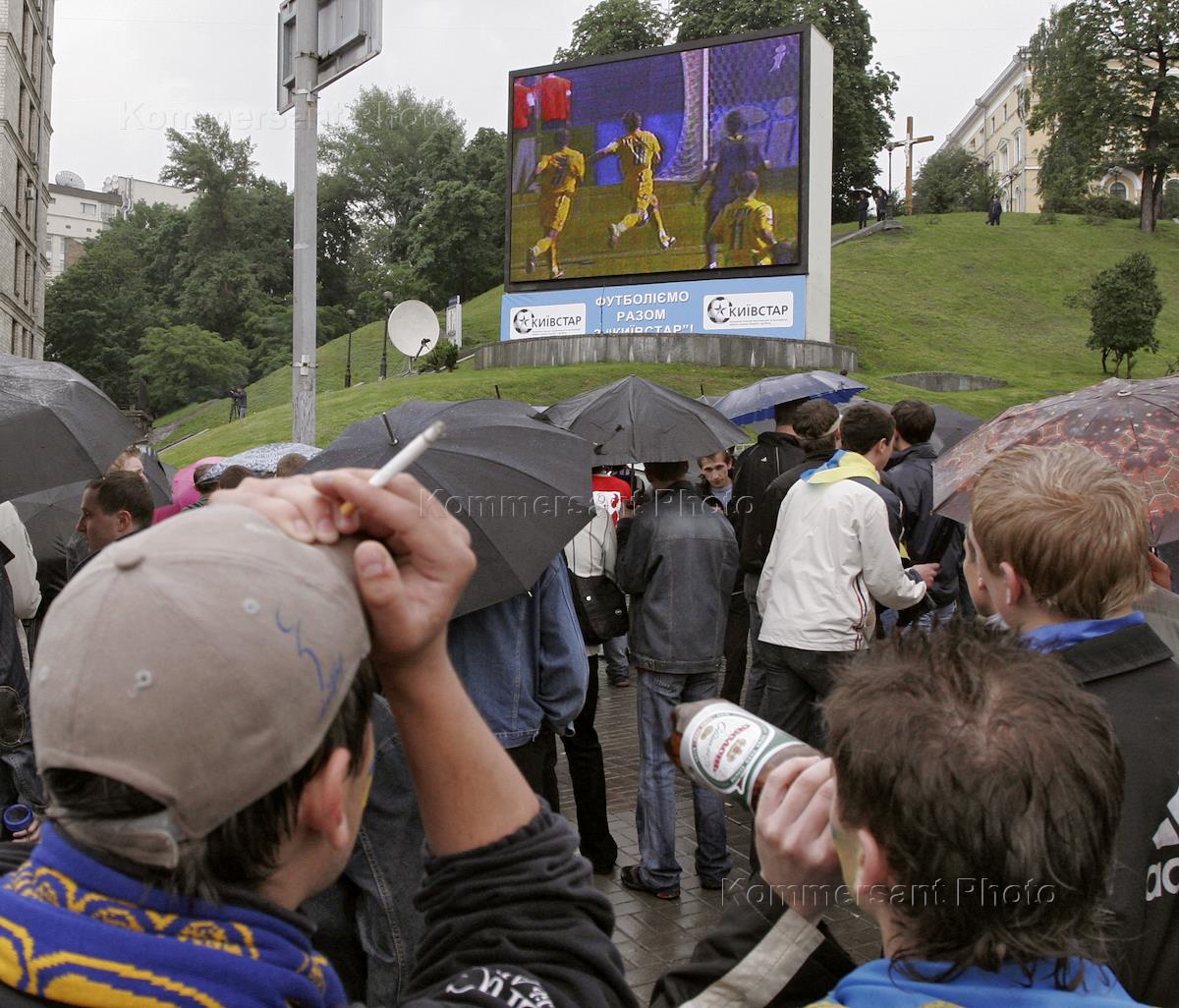 Болельщики сборной Украины по футболу во время прямой трансляции матча между сборными Украины и Испания на Чемпионата мира по футболу - 2006 в Берлине. Трансляция матча прошла на Майдане Независимости.