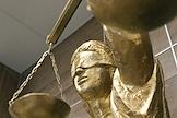 Жанровая фотография. Статуя богини правосудия Фемиды в холле здания суда.