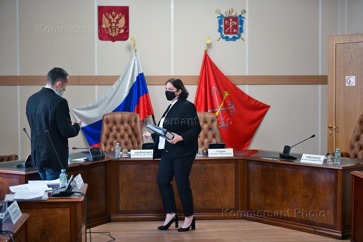 Заседание Уставного суда Санкт-Петербурга по делу № 002/21 (до перерегистрации № 006/20) о соответствии Уставу Санкт-Петербурга пунктов 1, 3.2 и 5 Положения об учете граждан России без определенного места жительства, утвержденного постановлением Правительства Санкт-Петербурга от 17 августа 2007 года № 1010. Поводом к рассмотрению дела послужил запрос группы депутатов Законодательного Собрания Санкт-Петербурга М.И.Амосова, Б.Л.Вишневского, А.Н.Рассудова, М.Л.Резника, Н.Г.Тихоновой. Судьи перед началом заседания.