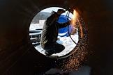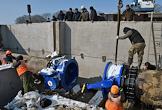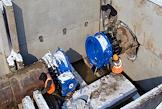 Строительство водозабора на реке Бельбек, по которому будет поступать вода в городские водопроводные сети Севастополя. Губернатор Севастополя Михаил Развожаев (в центре) во время осмотра хода строительства.