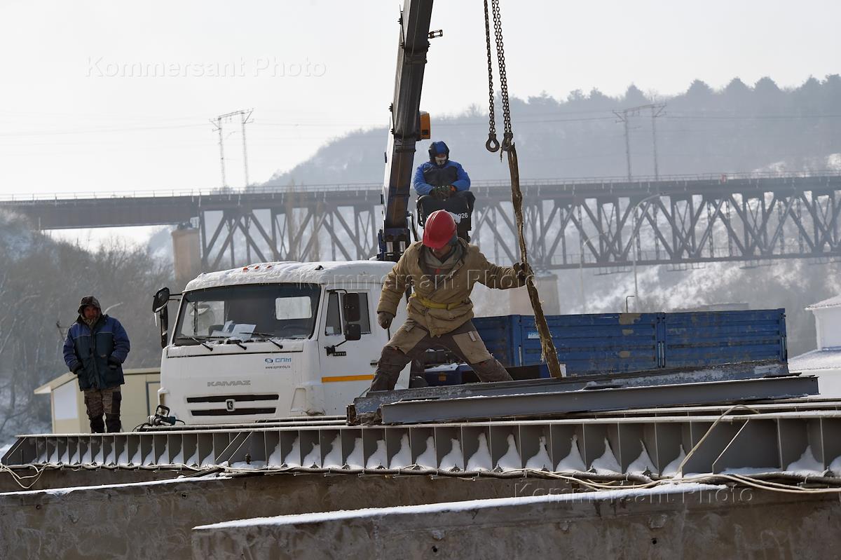 Строительство водозабора на реке Бельбек, по которому будет поступать вода в городские водопроводные сети Севастополя. Губернатор Севастополя Михаил Развожаев во время осмотра хода строительства.