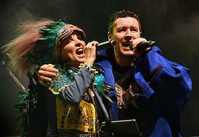 Концерт молдавской рок-группы Zdob și Zdub "Здоб ши здуб" в концертном клубе "ГлавClub". Приглашенный гость, лидер группы "Маша и медведи" Мария Макарова во время концерта.