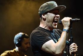 Концерт группы Zdob si Zdub в Главклубе. Солист рок-группы Zdob si Zdub Роман Ягупов во время концерта.